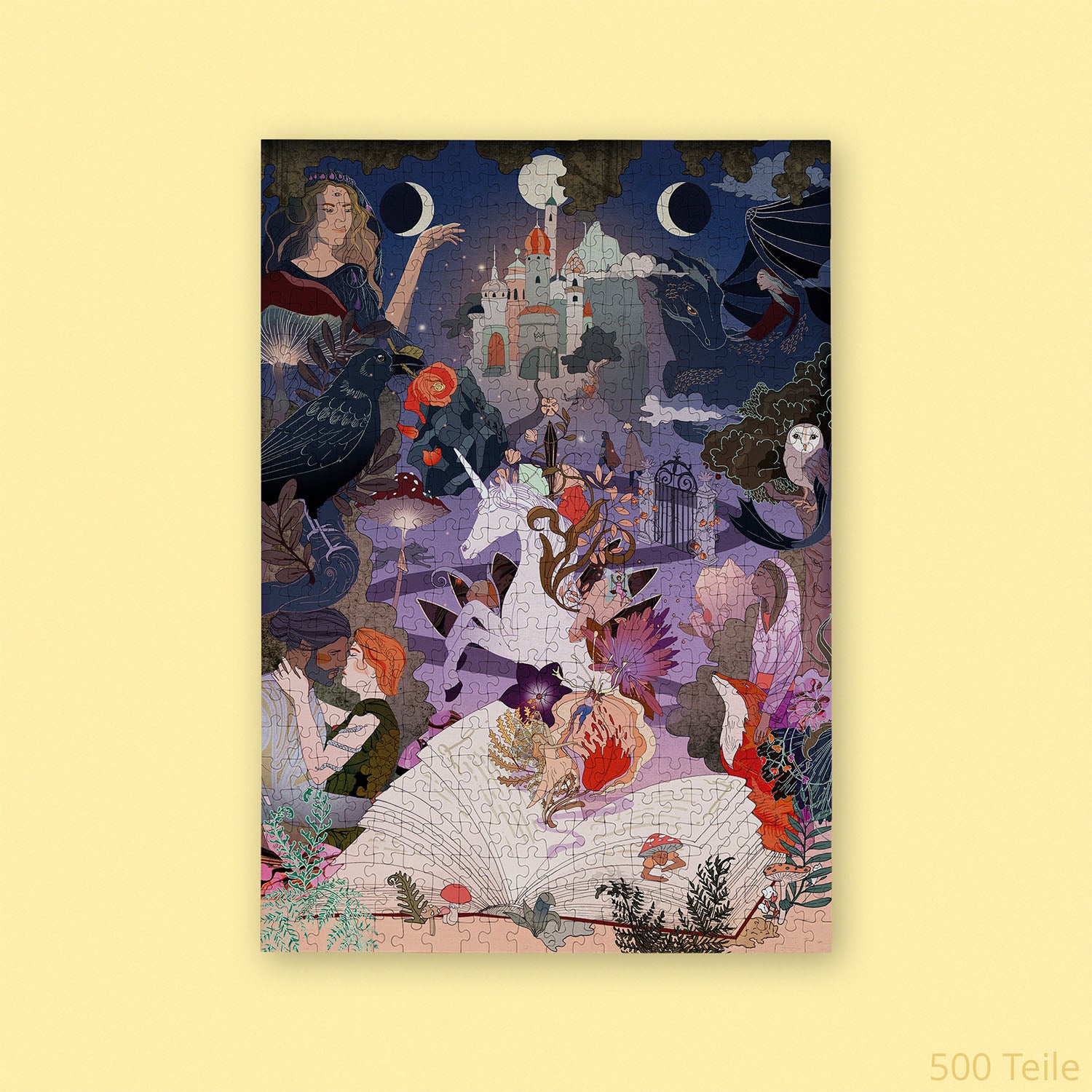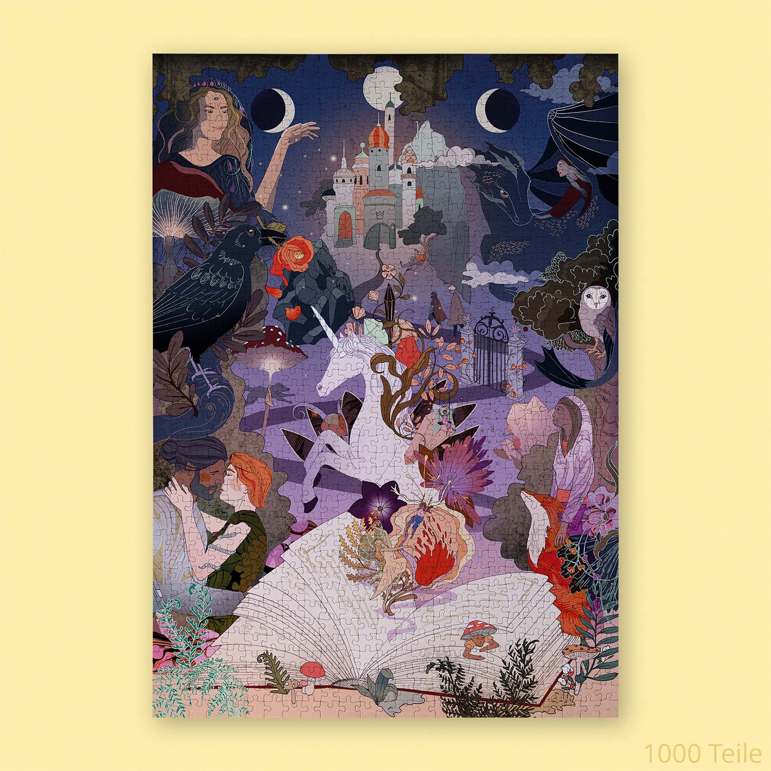 Mit unserem Fantasy Book Club Puzzle entdeckst du eine Welt voller Magie, Legenden und fantastischer Wesen. Drachen, Einhörner, mutige Held*innen und geheimnisvolle Orte aus Fantasy-Romanen fügen sich Stück für Stück zu einem Bild voller Abenteuer zusammen. Ein Puzzle für alle, die Fantasy nicht nur lesen, sondern verborgene Legenden erleben möchten – alleine oder im Book Club. Von der ersten Ecke bis zum letzten Teil entsteht so ein Abenteuer, das nicht nur zusammengesetzt, sondern richtig erlebt wird.
