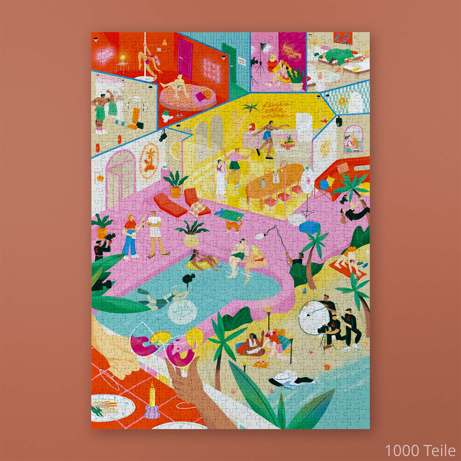 Ja, du hast richtig gelesen. Mit unserem Trash Paradise Motiv kannst du dich in eine bunte Dating Show ganz nach unserem Gusto puzzeln. Die Drama Kings und Queens streiten in der Küche, der Fitness Bro küsst seinen Bizeps und am Pool wird heißer Gossip ausgetauscht. Und das beste: wenn du Merch und Puzzle zusammen bestellst, erhältst du einen Bundle-Rabatt!