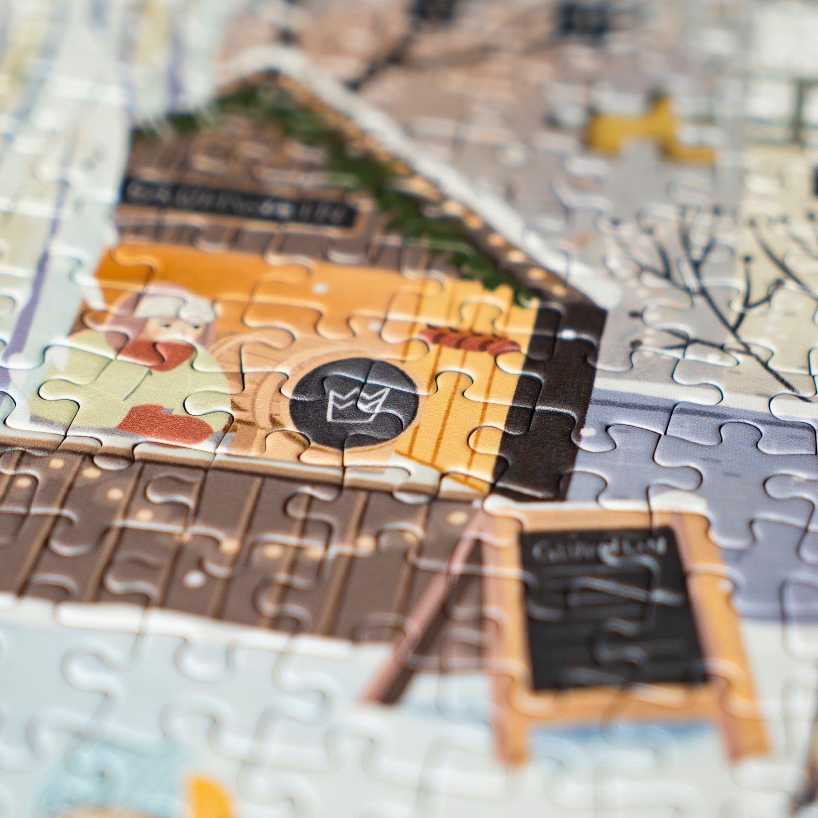 Wenn du auch zu den Menschen gehörst, die sich gerne mit viel Tee, Kerzenlicht und Weihnachtsfilmen auf den Winter einstimmen, dann haben wir hier genau das richtige Puzzle für dich. Schneeflocken und der Geruch von Zimt und Nelken schweben über der Stadt, einige Personen sausen mit Schlittschuhen über eine Eisfläche, während auf der Parkbank gekuschelt wird und in den Häusern langsam die Lichter angehen. Winter Wonderland ist ein Puzzle, das zum Entspannen und Träumen einlädt.